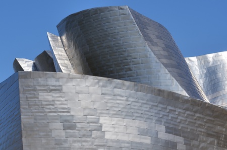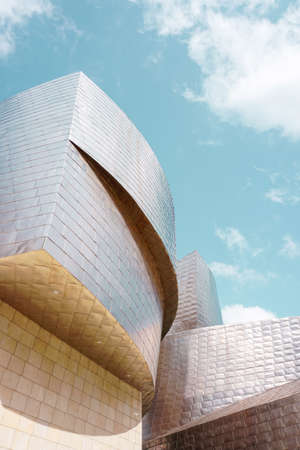 Bilbao, Biscay, Basque Country, Spain, July 30, 2011: foreground view of the titanium facade of the Guggenheim Museum. Guggenheim Museum is dedicated exhibition of modern art and was designed by architect Frank Gehry.
