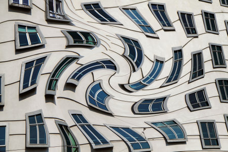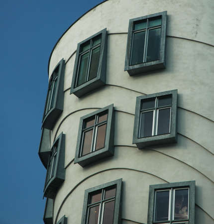 Detail of dancing house windows. Prague, Czech Republic