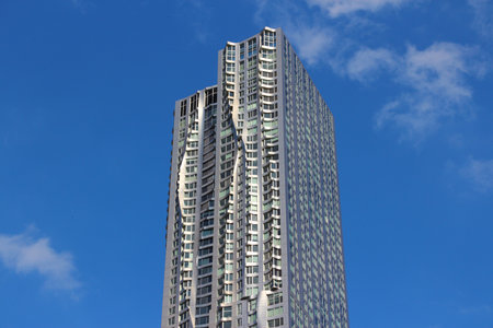 NEW YORK, USA - APRIL 21, 2016: View at 8 Spruce Street in New York. It is a 76-story skyscraper designed by architect Frank Gehry.