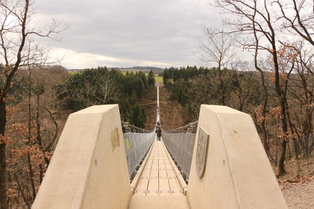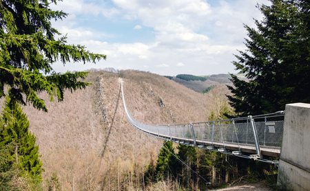 The Geierlay is a suspension bridge in the low mountain range of the Hunsrück in central Germany