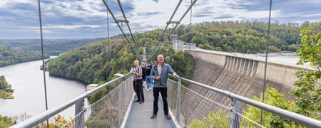 HARZ, GERMANY - JULY 29, 2017: In 2017 completed Harz Rappodetalsperre suspension bridge in East Germany attracts the visitors.