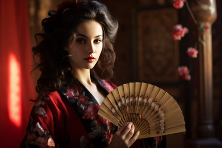 Elegant Woman in Traditional Attire: Captivating with Her Fan