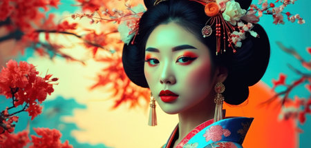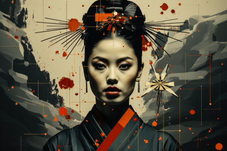 Abstract portrait of traditional japanese woman. Generative AI.