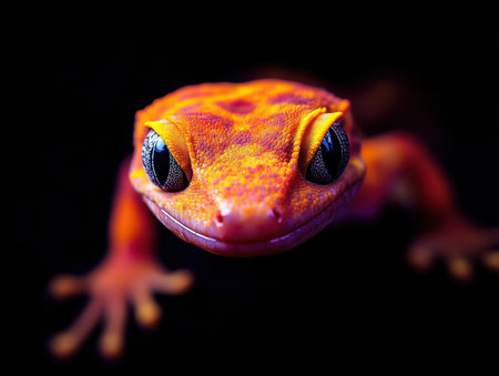 Close-up of a vibrant orange gecko with a mesmerizing eye