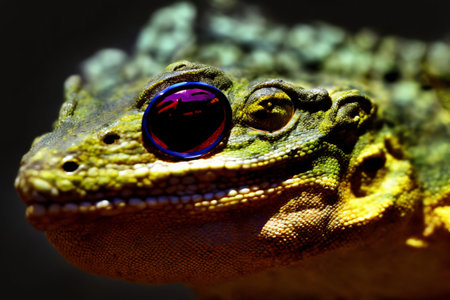 A close up of a captivating dragon lizard, a terrestrial reptile with vibrant scales and a starryeyed gaze. This macro photography captures the mesmerizing beauty of wildlife in art