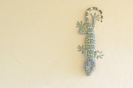 Close up of Tokay Gecko (Gekko gecko) climbing wall. Tokay is a large crepuscular arboreal gecko native Southeast Asia.