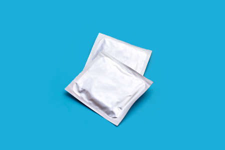 Single condom packet isolated on white background