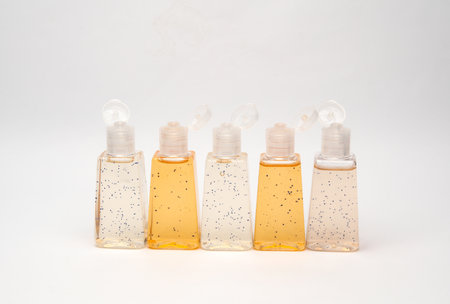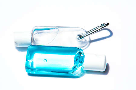 Antiseptic bottles isolated on white background