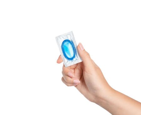 Close up of a condom on a white background. Safe sex concept.