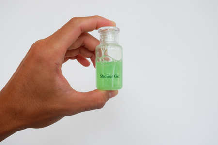 hand hold a mouthwash liquid container