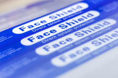 Closeup Stack of Blue Face Shield to protect from direct splash and droplets.