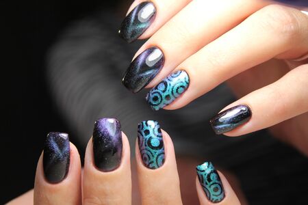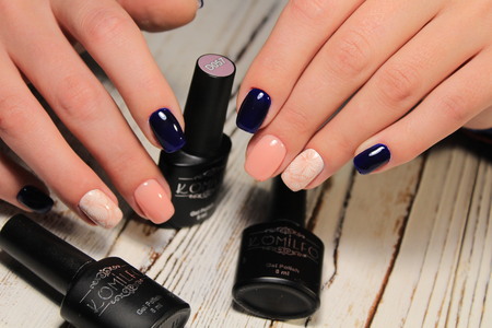 Manicure design nails varnish changes color.