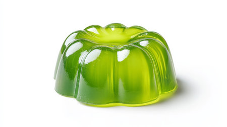 A dynamic image of a spoon scooping up a luscious, wobbly jelly from a dessert cup, with the vibrant colors and translucent texture clearly visible.