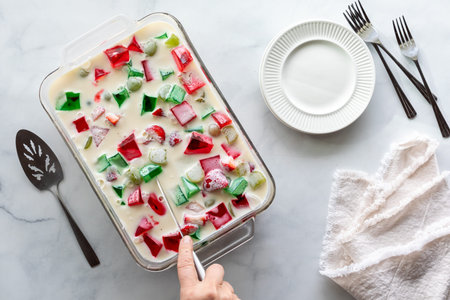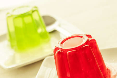 Servings of a sweet tasty homemade gelatin dessert, ready for eating.