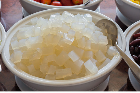 jelly in flower shape : Thai traditional dessert made from sugar, gelatin and coconut milk with grains