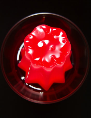 bright sweet jelly as red tulip. red coral berry sweet pieces of clean jelly isolated. Homemade Red Cherry Gelatin jelly Dessert in a Bowl. natural berry dessert for kids and adults