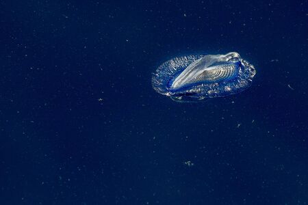 jellyfish underwater, dark background, blue color light, wildlife sea animal, beautiful scene of swimming.