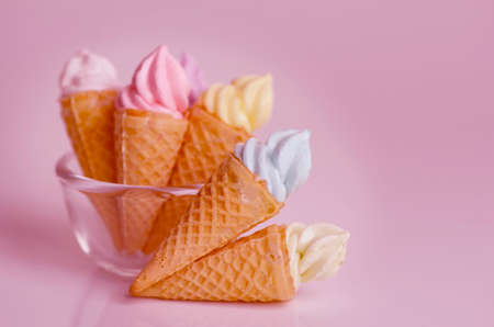 Mini ice cream cone in pink pastel tone.