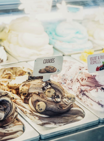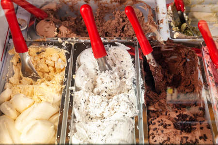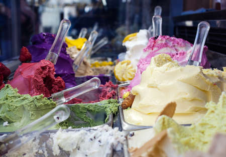 Genuine Italian ice - Variety of yummy ice creams under shopping window