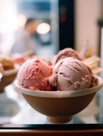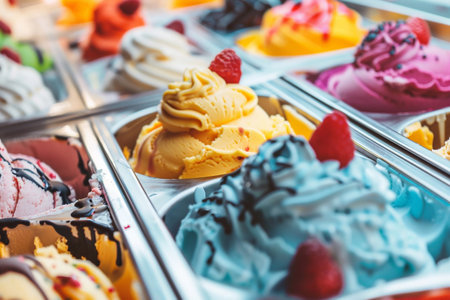 Explore a vibrant display of assorted ice cream flavors showcasing a delightful treat in a cozy shop.