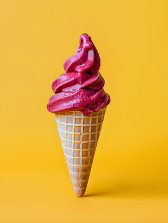 Burgundy Ice Cream Cone on a yellow background
