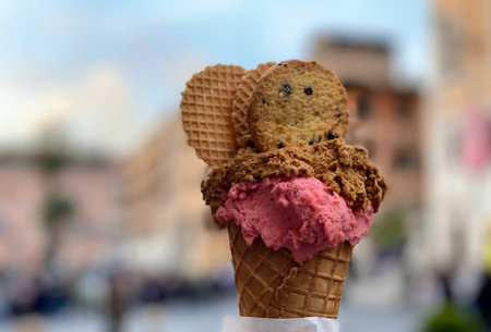 Gelato Ice cream cone sweet dessert in Florence city.