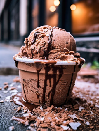 Taking a break from the adventure and relishing a scrumptious ice cream at a cozy mountain resort. Generative AI.