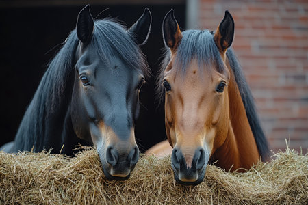 A Close-Up of Two Horses in Mutual Solace. Generative AI