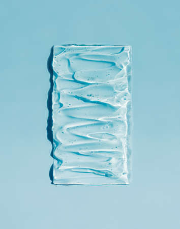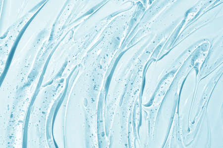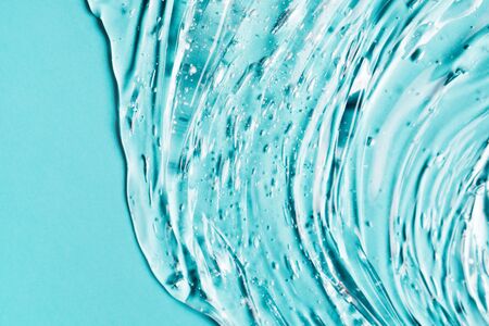 Liquid gel abstract cosmetic blue background. Smear of transparent moisturizing product