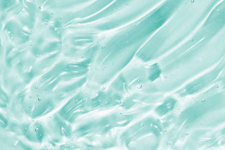 Blue waved serum with bubbles.Cosmetics smear of aloe vera or antibacterial gel.Good as mockup with copy space.Advert banner.