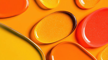 Cosmetic concept: drop and smears of various cosmetic products on a colored background. Body and face care products. Personal care.