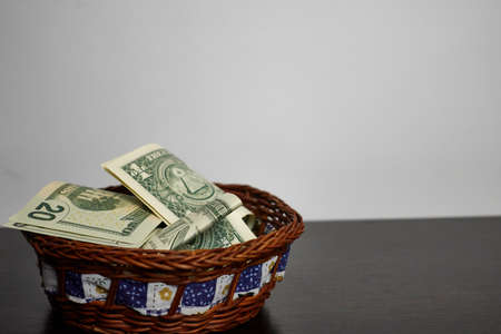basket with dollars for savings or tips