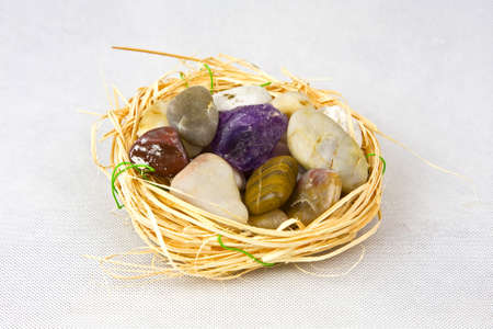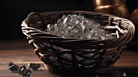 crystal in a basket on a wooden table, close-up