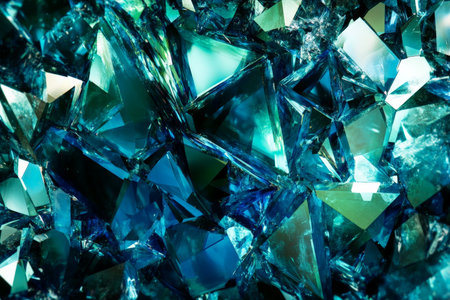 Glittering gemstone texture, vibrant blue and green crystals with intricate light refractions, luxurious and sharp