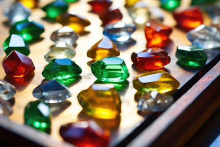 This stunning close-up image showcases a collection of vibrant gemstones in various colors, reflecting light and enhancing the artistic appeal for decorations.