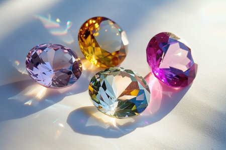 A stunning collection of colorful gems lying on a bright surface, showcasing their brilliance and shadows. Perfect for creative projects and jewelry design inspirations.