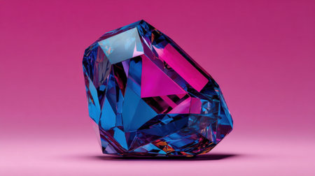 Eye-catching gemstone showcasing vibrant blue and pink colors, set against a pink background; perfect for art, luxury, or decorative themes in photography.