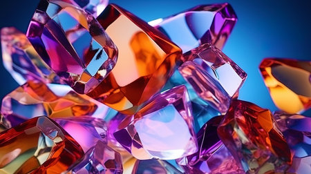 A 3D rendered image showcasing an abstract crystal background with an iridescent texture. Generative Ai