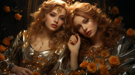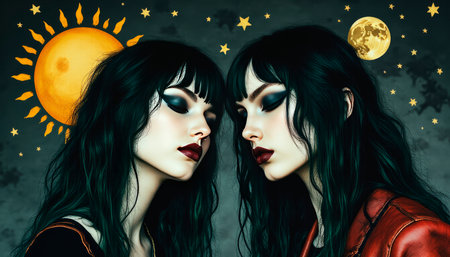 Gemini zodiac signs as a beautiful twins girl persons. Astrological horoscope fantasy character illustration.