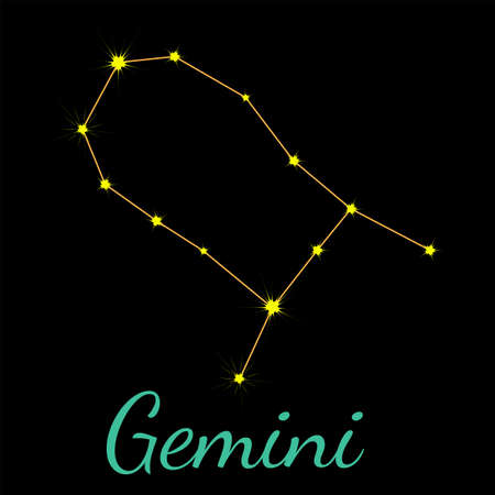 Gemini vector constellation with stars and name. One of twelve elements of western horoscope. Graphic elements for print designs - calendar, poster, sky map, sticker
