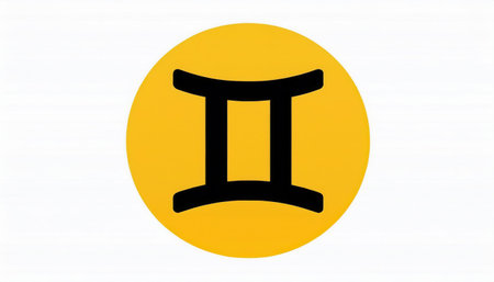 Gemini's symbol showcases its twin representation within a vibrant yellow circle, capturing the essence of this zodiac sign.
