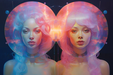 Cosmic gemini twins with vibrant neon colors for astrology and zodiac themes