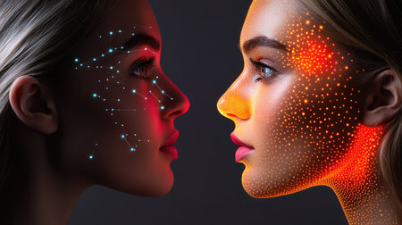 Two female faces representing artificial intelligence and cyber security