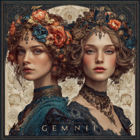 Gemini zodiac signs as a beautiful twins girl persons. Astrological horoscope fantasy character illustration.