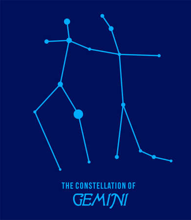 Gemini vector constellation with stars and name. One of twelve elements of western horoscope. Graphic elements for print designs - calendar, poster, sky map, sticker
