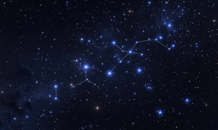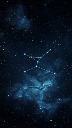Starlit night sky with constellations illuminated against a deep blue cosmos