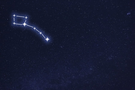 Big Dipper constellation. Stick figure pattern in starry night sky