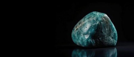 Grandidierite is a rare precious natural geological stone eremite on a black background in low key. Fashionable jewelry elegant decoration. AI generated. Header banner mockup with space.