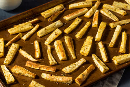 Homemade Roasted Parnsip Fries with Salt Pepper and Thyme