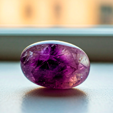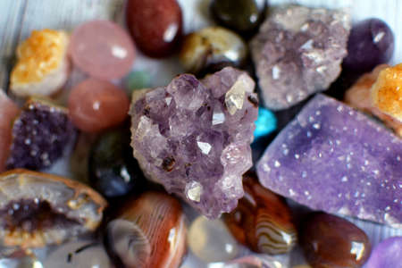 Amethyst gemstone on the table. Amethyst is a natural gemstone.